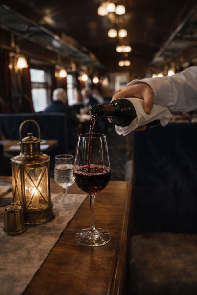 Vaikka matka vie menneeseen aikaan ja fantasiaan, junassa ei tingitä nykypäivän laadusta. Ruoka- ja juomakokemukset ovat modernia pohjoista gastronomiaa: kaikki tarjoiltava valmistetaan huolella paikallisista raaka-aineista. Junassamme on A-oikeudet, ja juomavalikoima on suunniteltu tukemaan kokonaiselämystä – ei peittämään sitä.