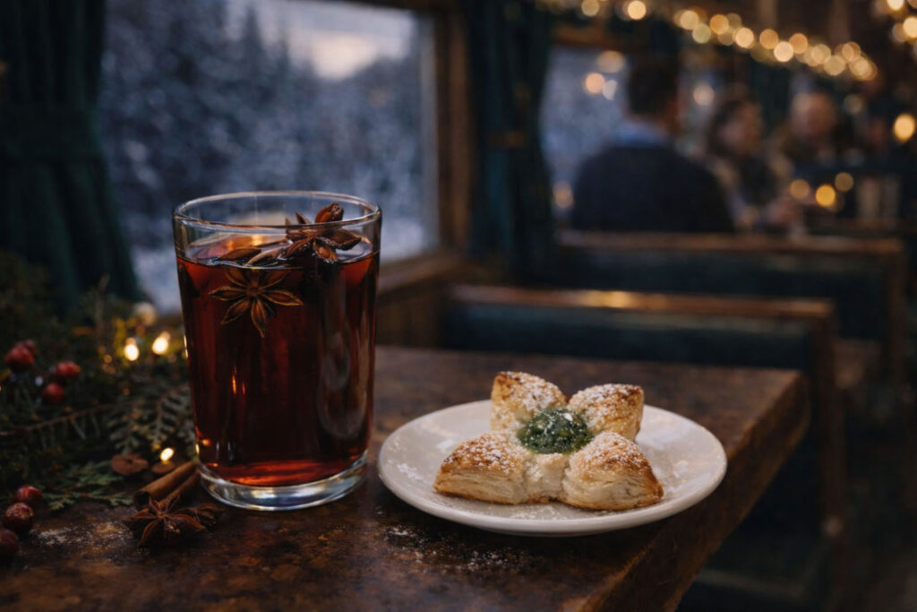 Matkan aikana tarjotaan lämmin juoma ja pieni jouluinen herkku.
